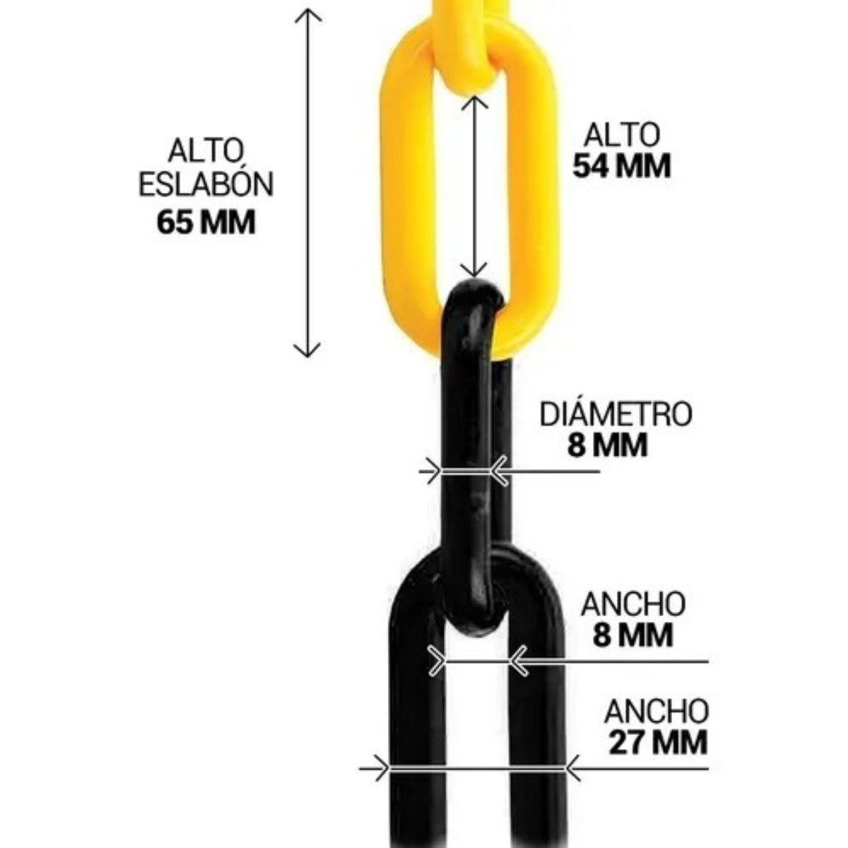 CADENA PLÁSTICA NEGRA Y AMARILLA 8x23x49mm (04332)