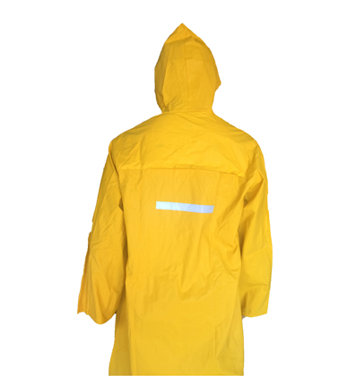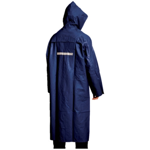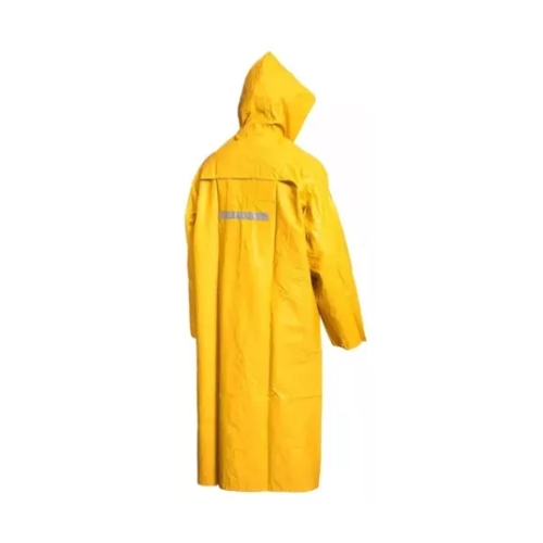 Capa larga en PVC, con botones. Capucha – Costuras Selladas. Composición: PVC/POL/PVC 32 Micrones. Con reflectivo en espalda. Talles S al 3XL Colores Amarillo Azul
