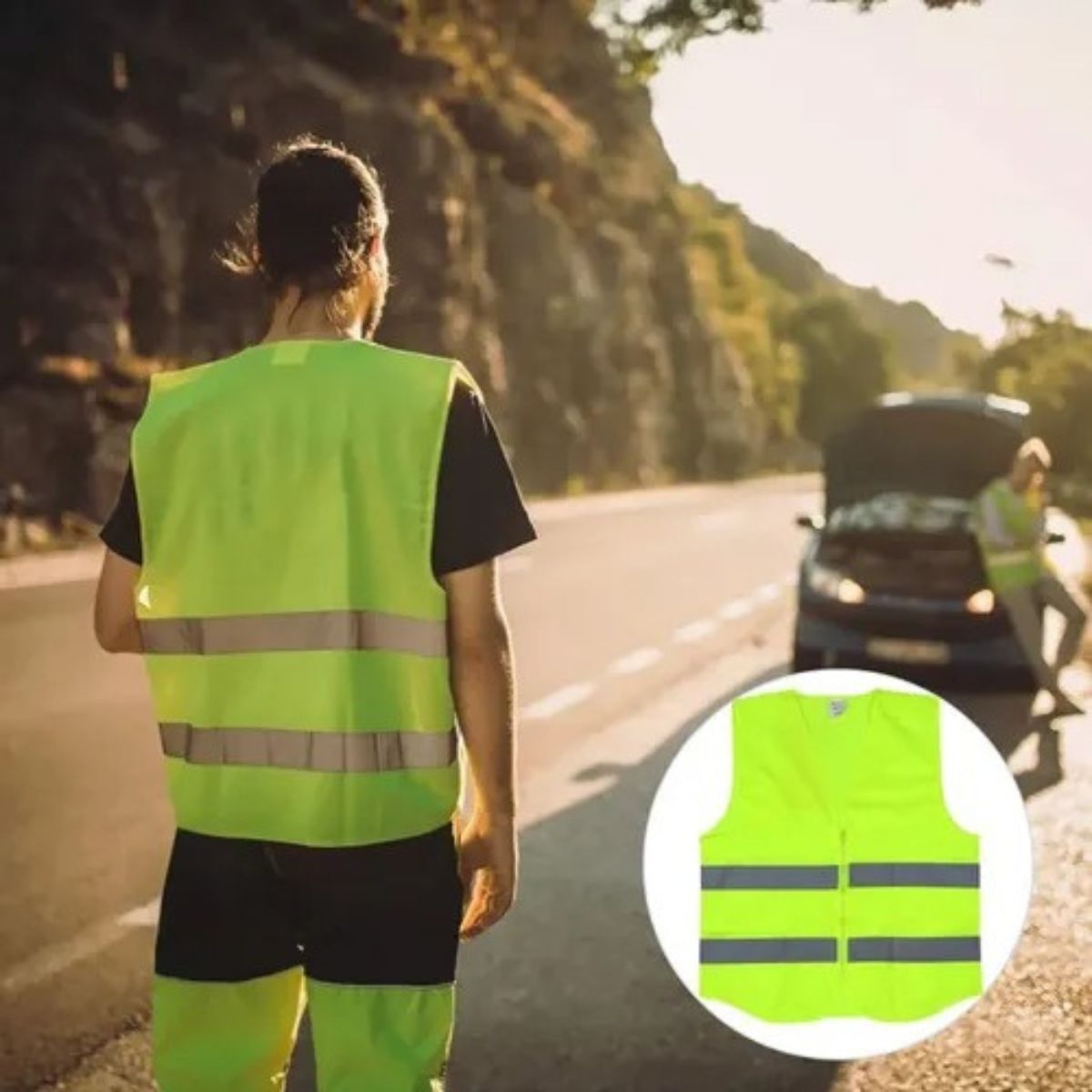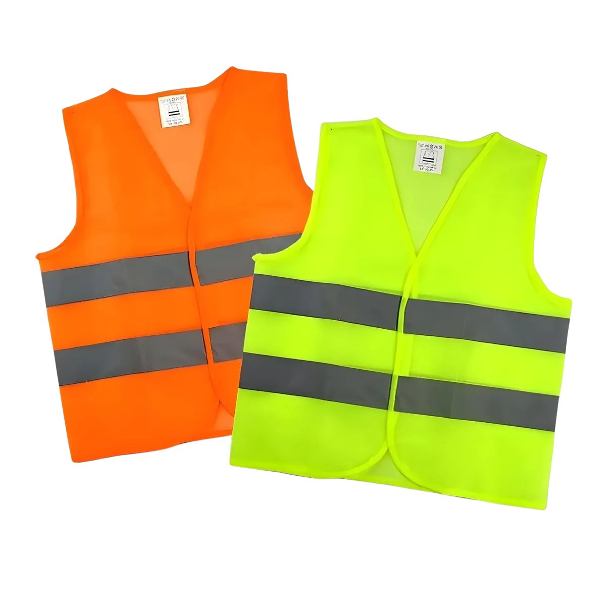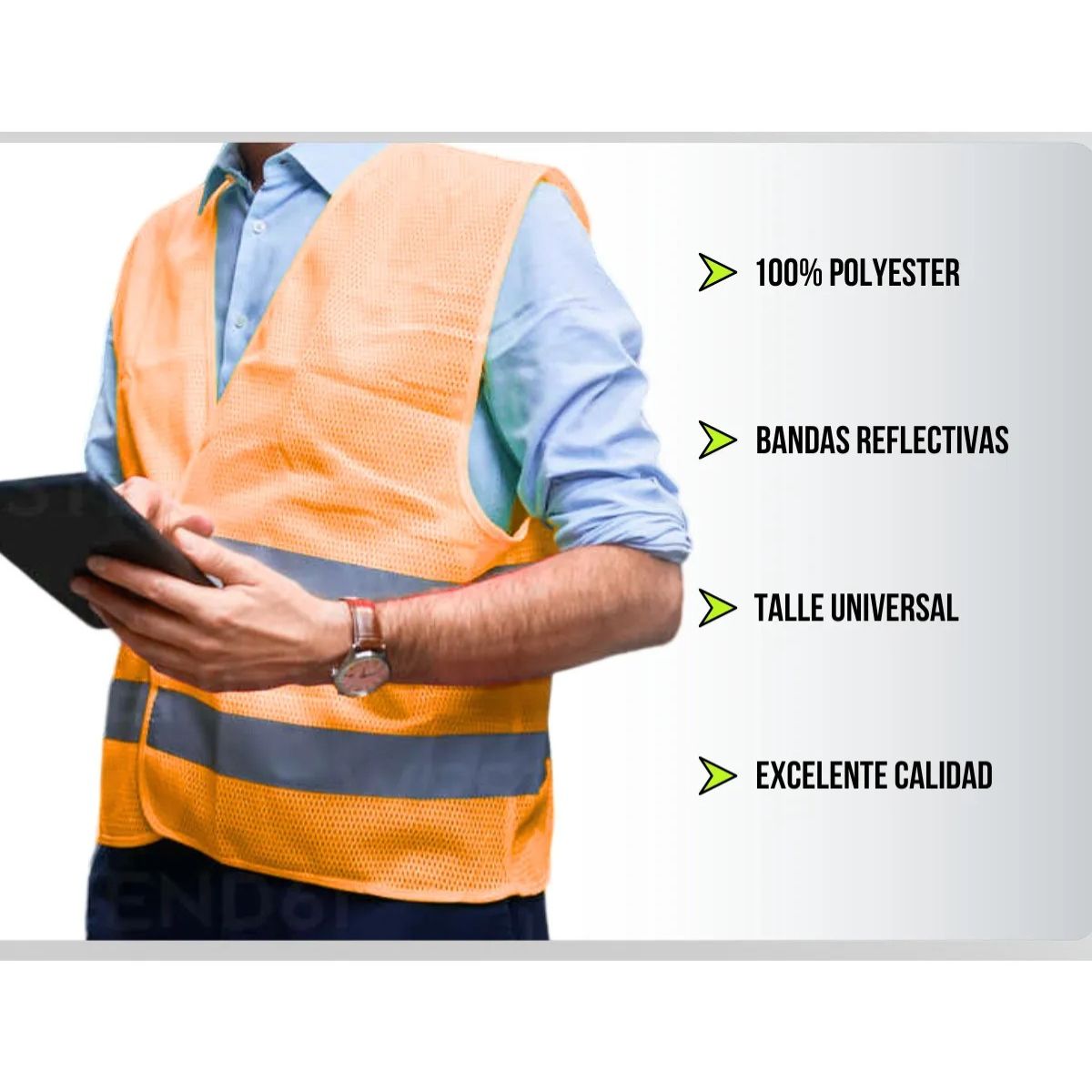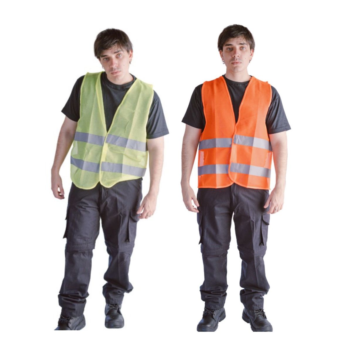 Chaleco de alta visibilidad Doble banda reflectiva de 5cm. Cierre con abrojo Tela de poliéster de 60gs Talle Único Colores Amarillo Naranja