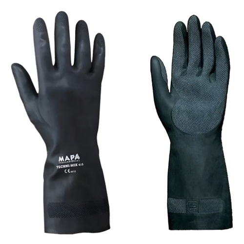 Guantes de látex natural con neopreno negro. Disponible en talles 8, 9, 10, 11.